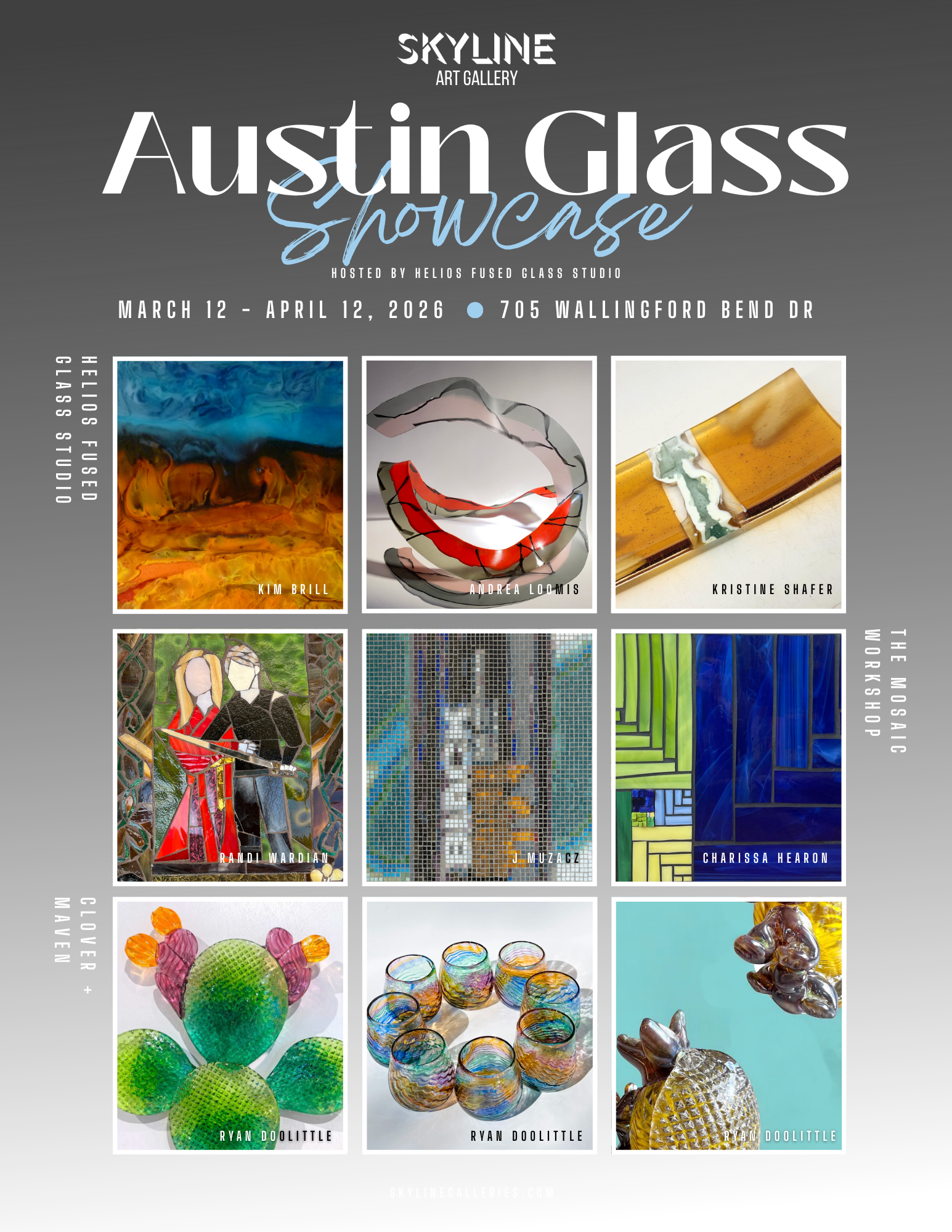 the Artist Studios the main GalleryOn display March 12 through April 12th is the inaugural Austin Glass Showcase. Featuring Artists From: Events Newsletter Sign up with your email address to receive news and updates Email Address Sign Up Thank you!
